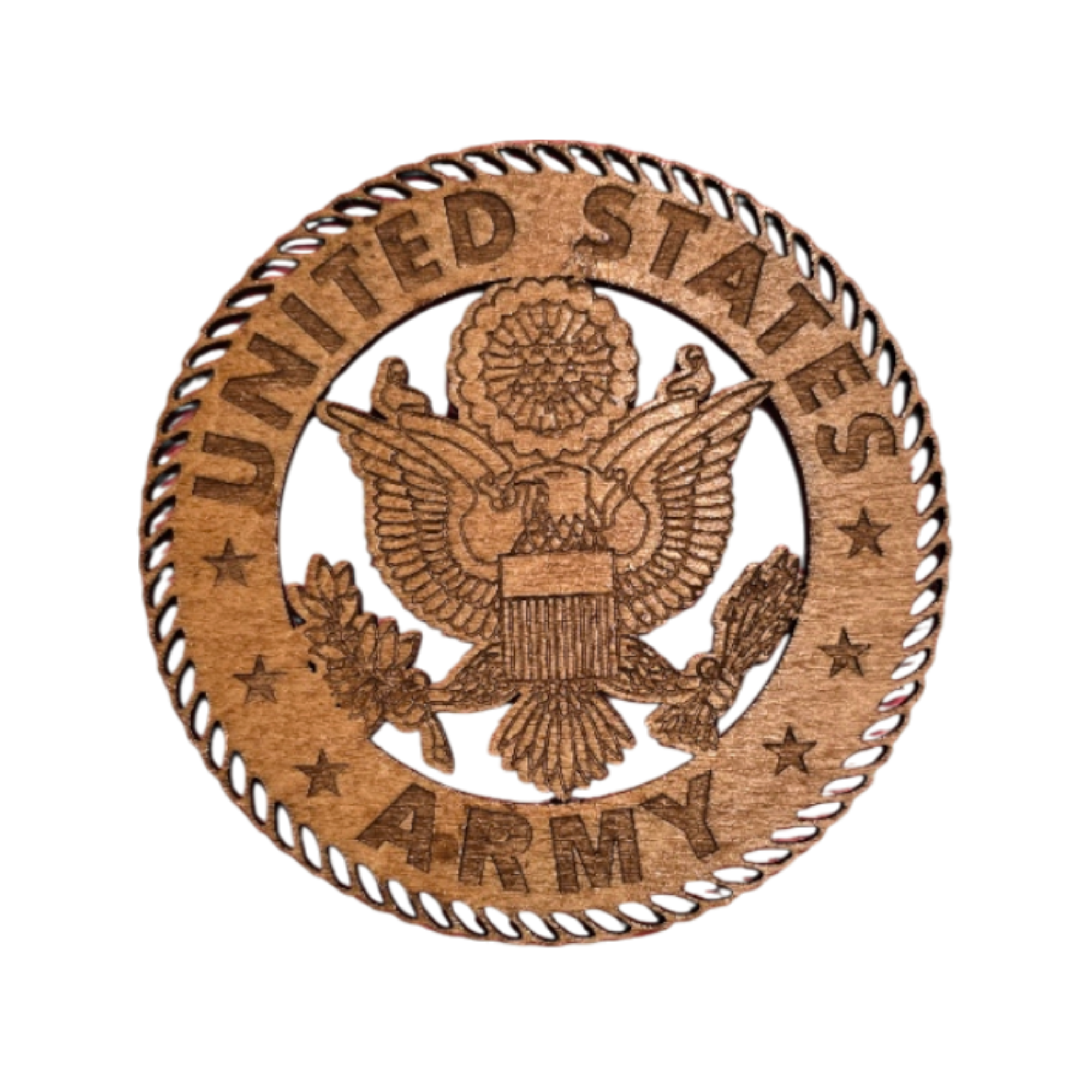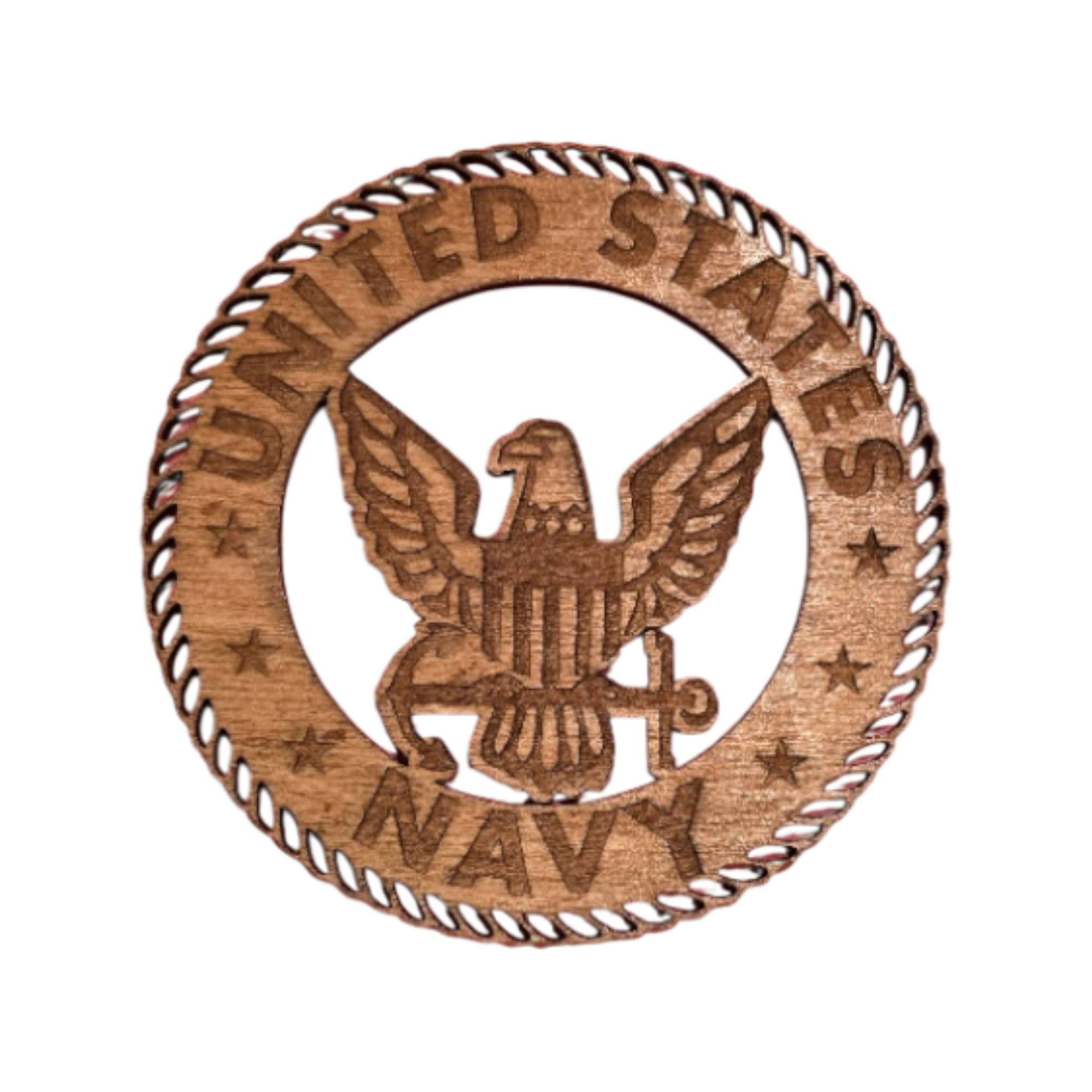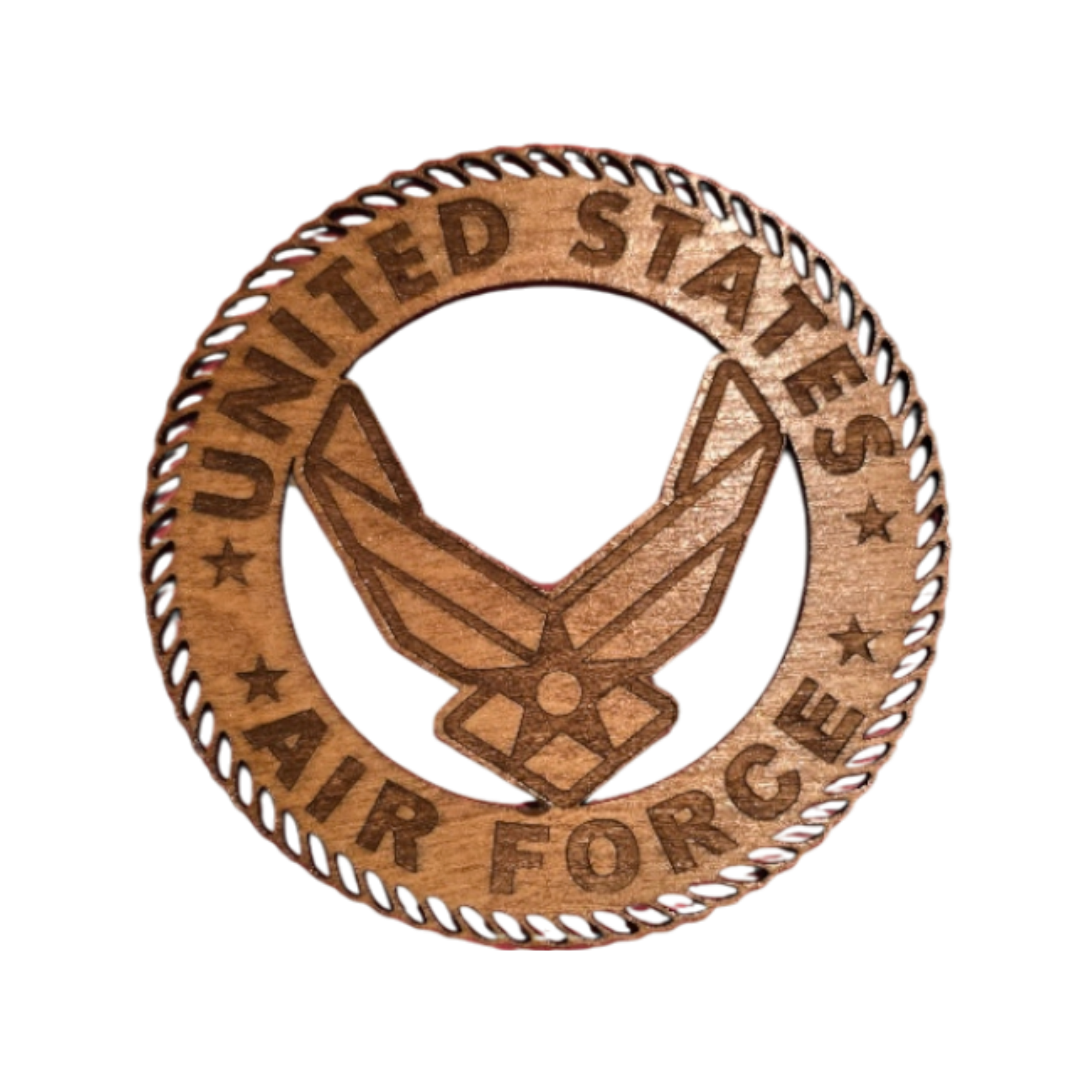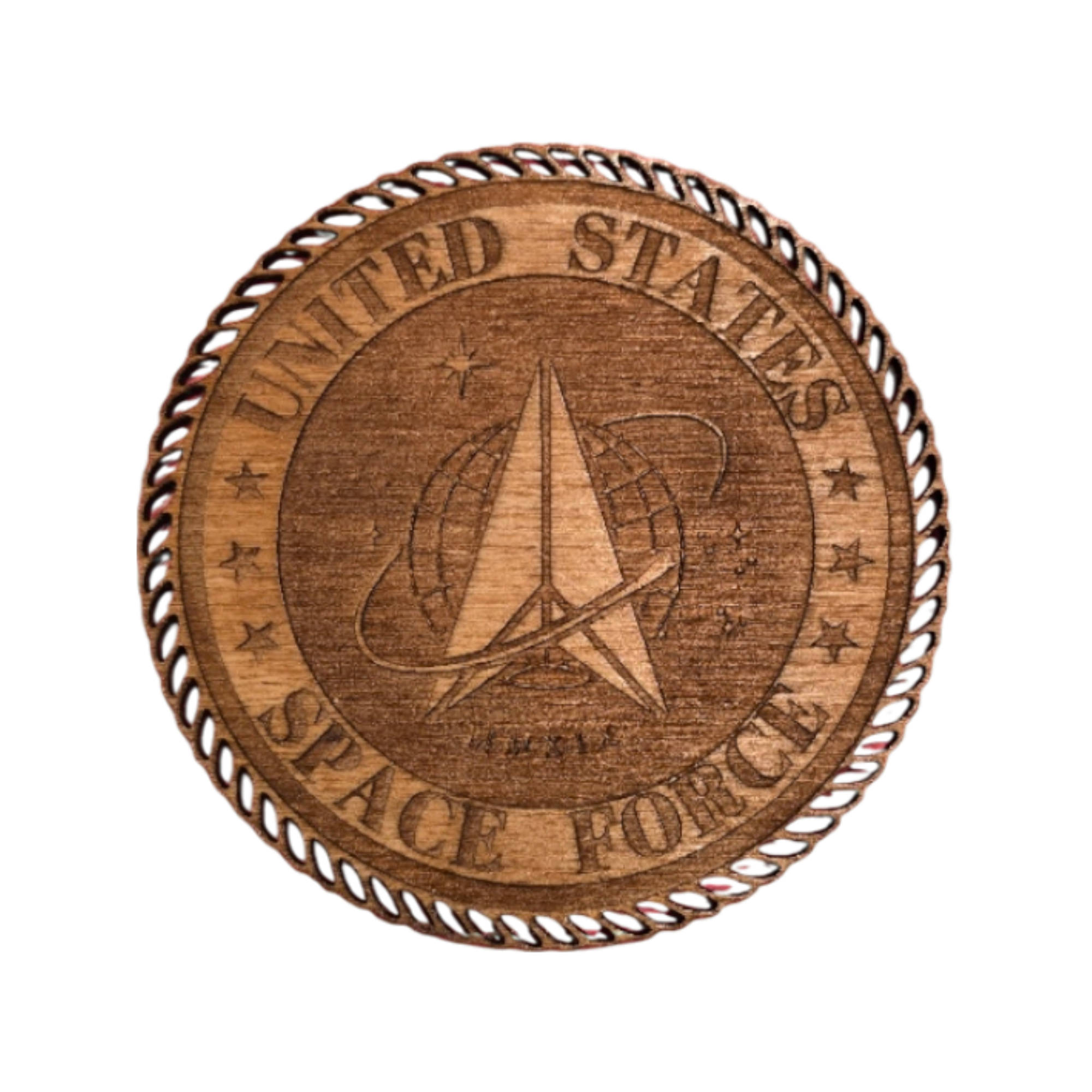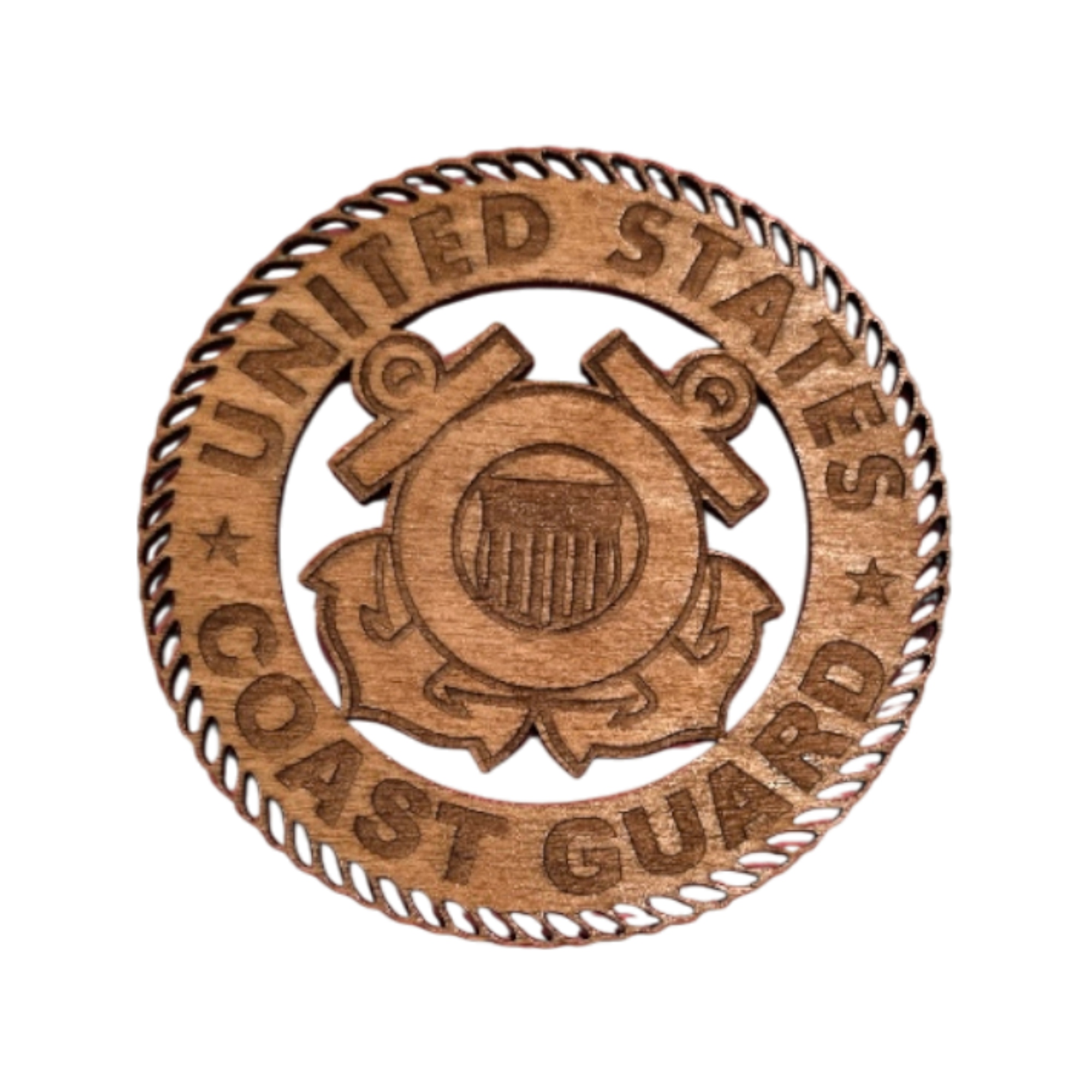 Precision-cut hardwood emblem designed specifically for the Tribute to Valor display. Each emblem highlights the depth, grain, and engraved detail unique to this branch of service.