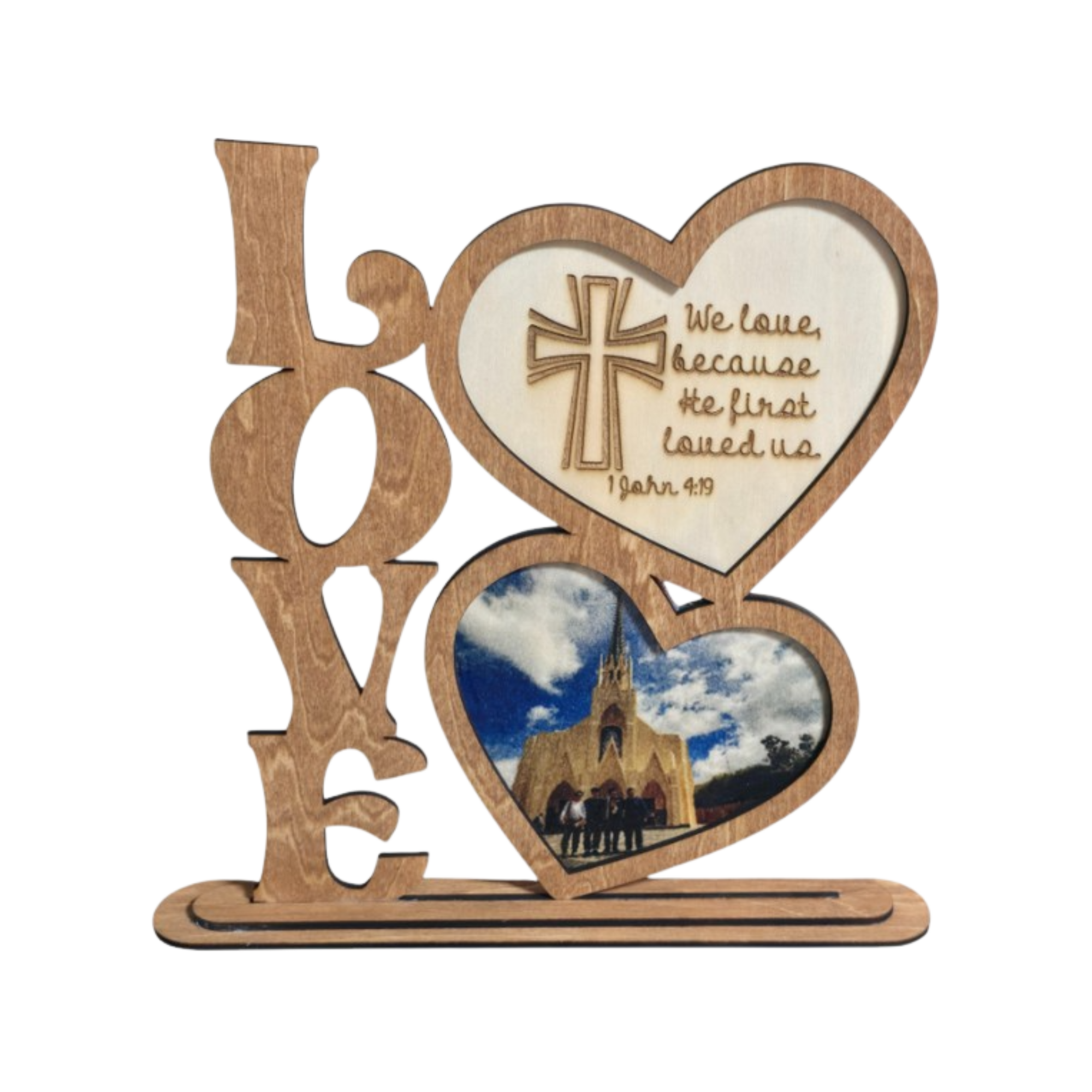 Enduring Love is a handcrafted wood photo display designed to showcase a cherished memory with warmth and simplicity. Featuring a bold vertical “LOVE” design alongside a personalized photo, this piece highlights the people and moments that matter most in a timeless format.