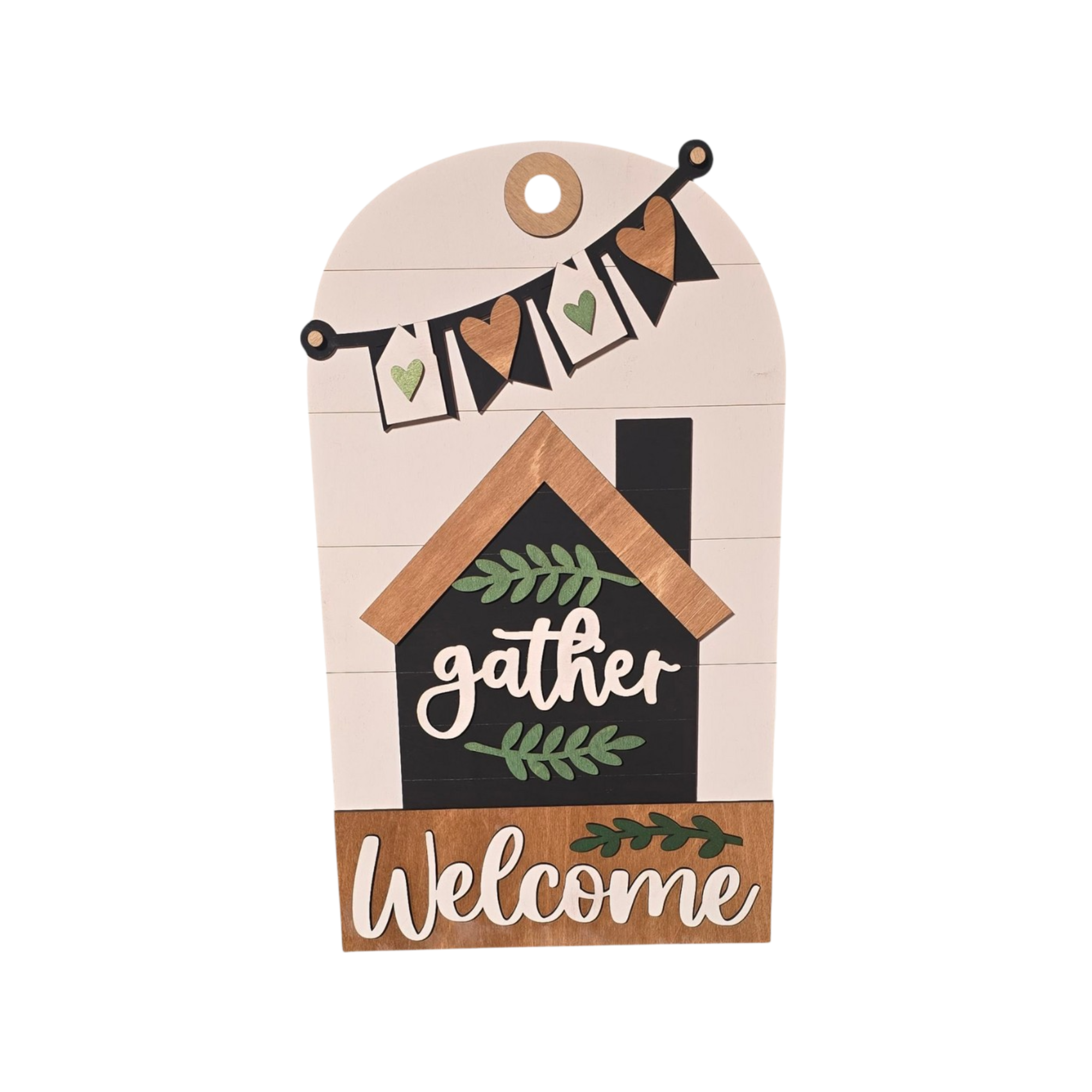 Celebrate everyday living with this layered farmhouse-style insert designed for use with the interchangeable door or entryway sign system. Featuring a welcoming house motif, heart banner accents, and soft greenery details, this design brings a timeless sense of warmth and home to your décor.