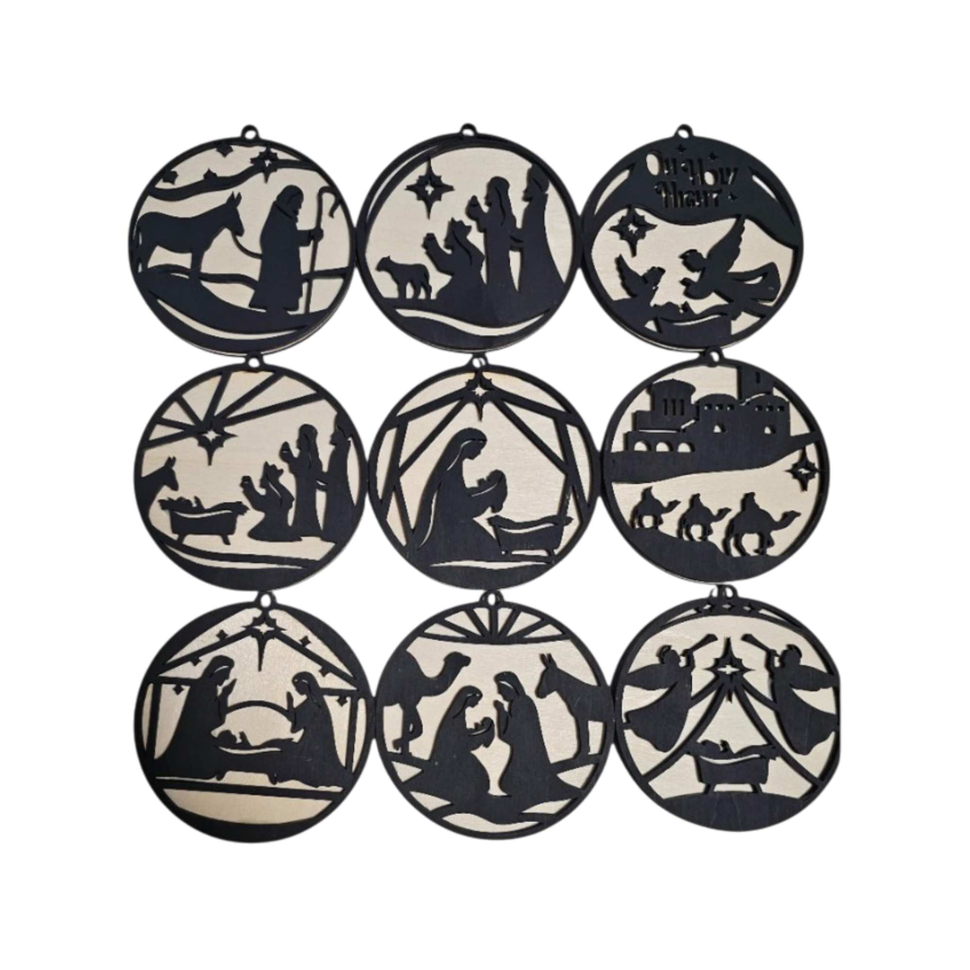 This nine-piece Nativity ornament collection beautifully tells the story of Christ’s birth—from the angel’s announcement to the manger scene. Each ornament is precision cut from premium wood and thoughtfully finished to reflect the reverence and wonder of the first Christmas.
