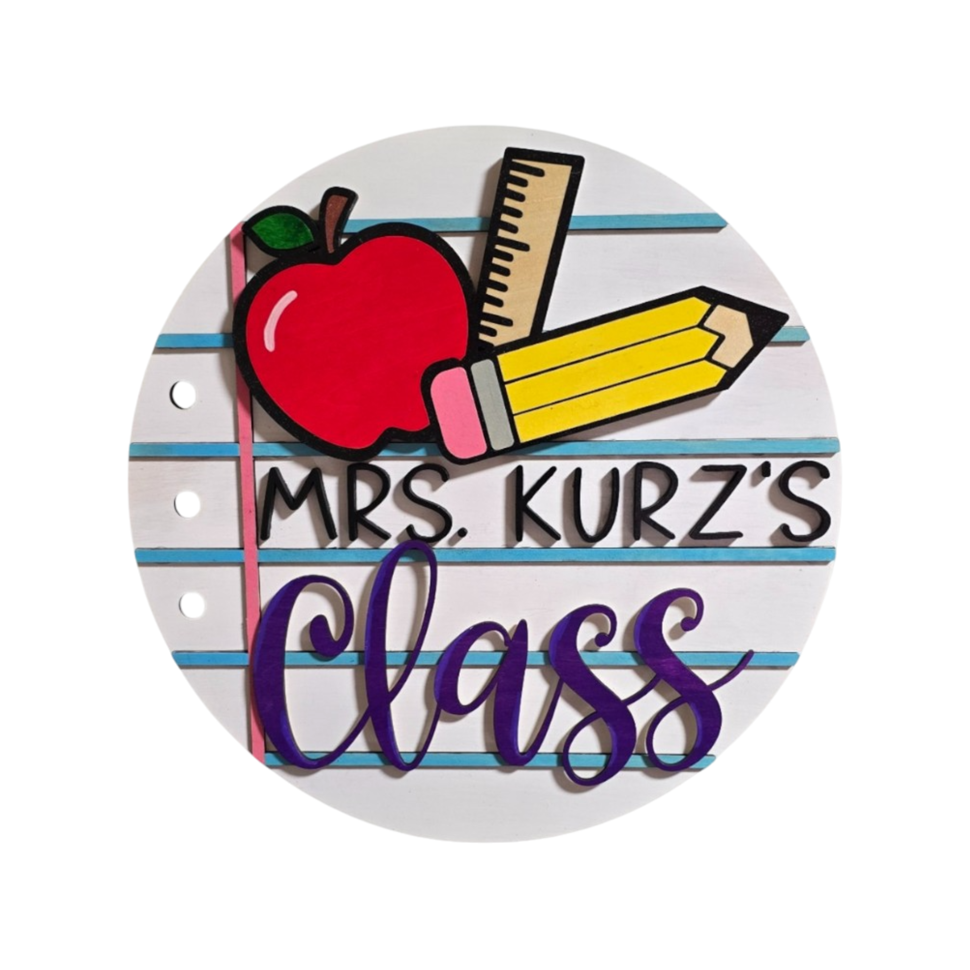 Each sign is carefully hand-painted and assembled, featuring a personalized name paired with playful yet intentional details that reflect both creativity and heart. Designed to be displayed with pride, it serves as a daily reminder of the difference teachers make.