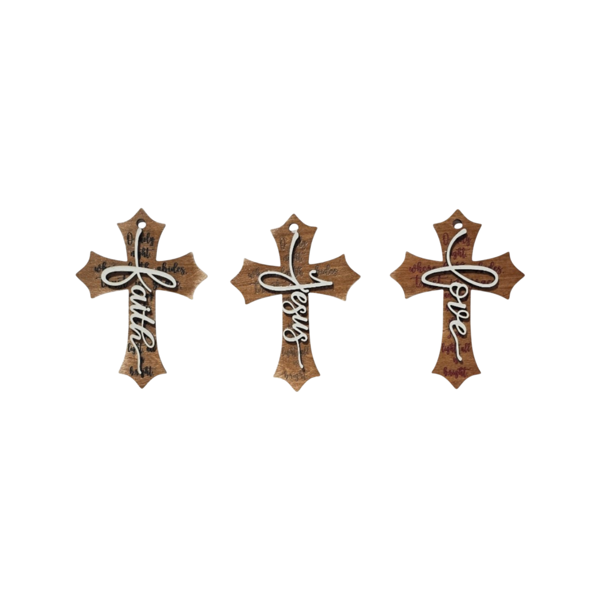Carefully cut, layered, and finished by hand, Heartspoken Cross Ornaments blend natural wood tones with dimensional detail, making them a heartfelt addition to Christmas trees, gift packages, or faith-filled décor throughout the year.
