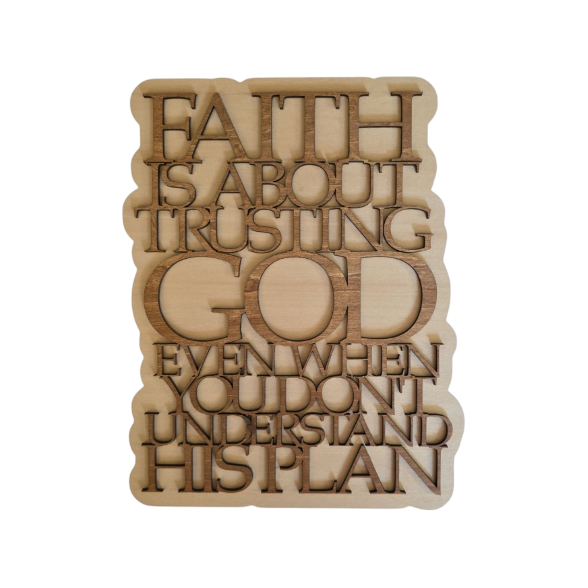 A bold, faith-forward statement piece designed to speak truth in moments of uncertainty. This handcrafted layered wood plaque reminds us that faith is rooted in trust, even when understanding feels out of reach.