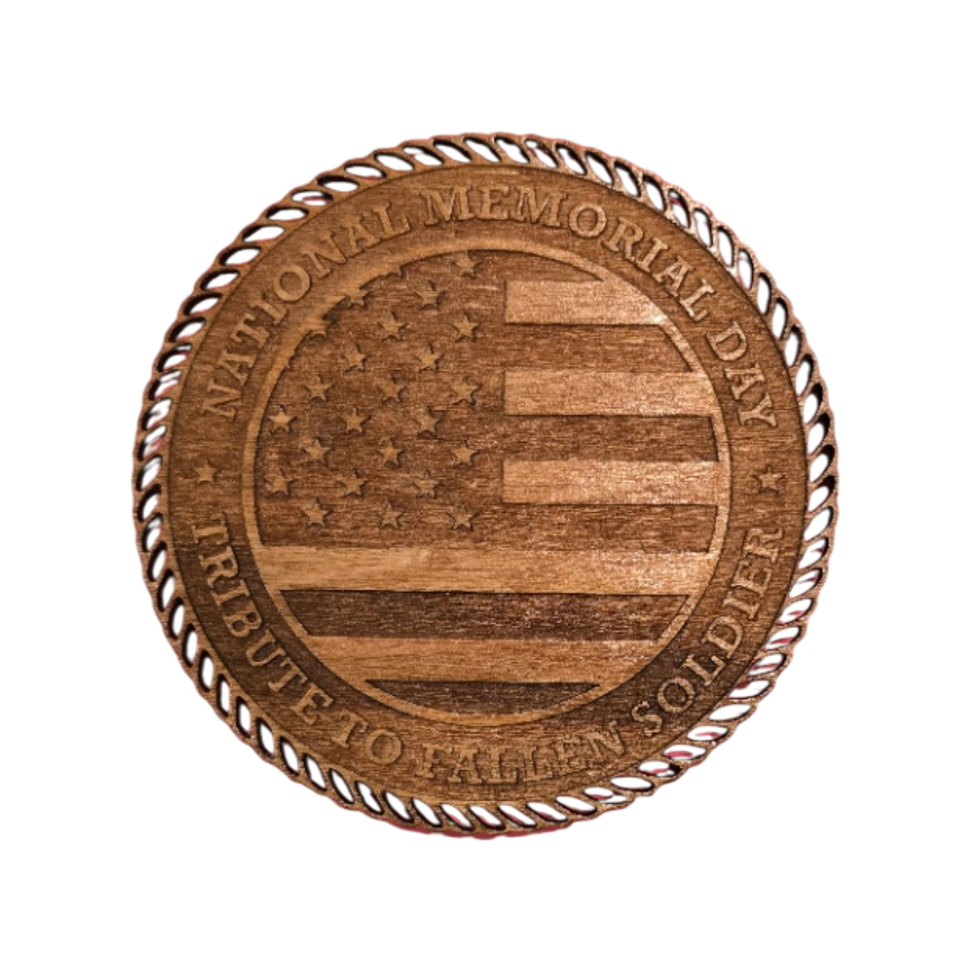 Designed to highlight the natural grain and texture of the wood, Tribute to Valor — Stained maintains a bold yet dignified presence, making it well suited for homes, offices, or memorial spaces.