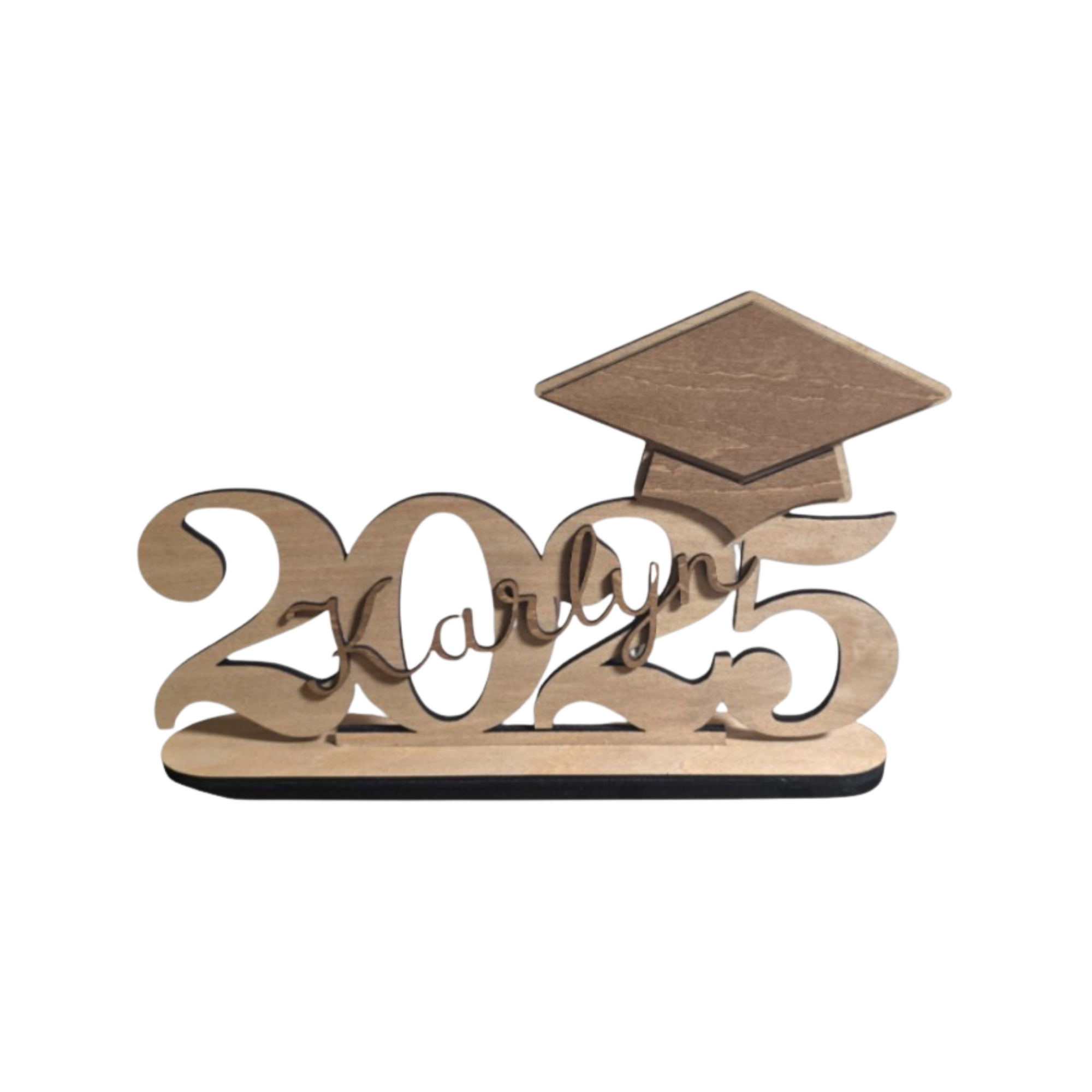 Crafted from layered wood and finished by hand, Graduation Glory features a classic mortarboard accent and a freestanding design that makes it ideal for desks, shelves, or graduation party displays. It is designed to stand as a lasting reminder of a moment worth celebrating.
