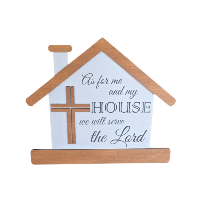 Inspired by Joshua 24:15, this handcrafted wood house serves as a reminder to ground our homes in faith: “As for me and my house, we will serve the Lord.” With its simple silhouette and Scripture-centered design, this piece reflects a commitment to faith, family, and daily devotion.