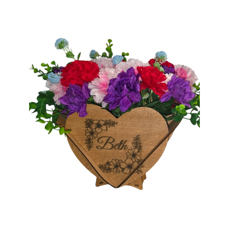 Faithful Bloom is a heart-shaped layered wood box designed to bring warmth, beauty, and meaning into any space. Finished by hand and thoughtfully constructed, this piece is made to hold artificial or fresh flowers, creating a heartfelt display for everyday décor or special moments of remembrance and celebration.