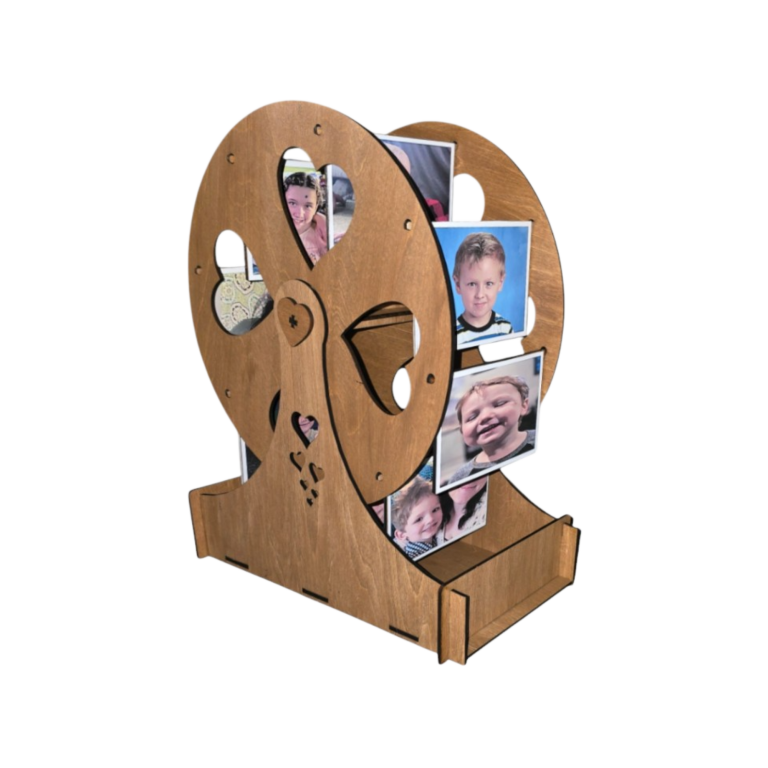 A playful and meaningful way to showcase life’s favorite moments, Circle of Memories is a handcrafted rotating Ferris wheel–style photo display designed to turn cherished photographs into an interactive keepsake. As the wheel spins gently, memories take center stage, creating a dynamic and heartfelt display for any home.